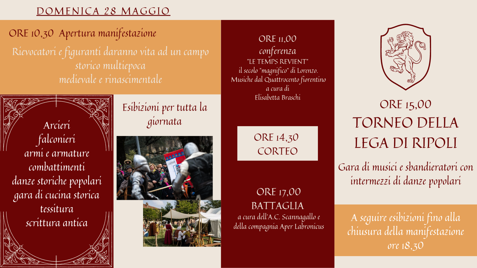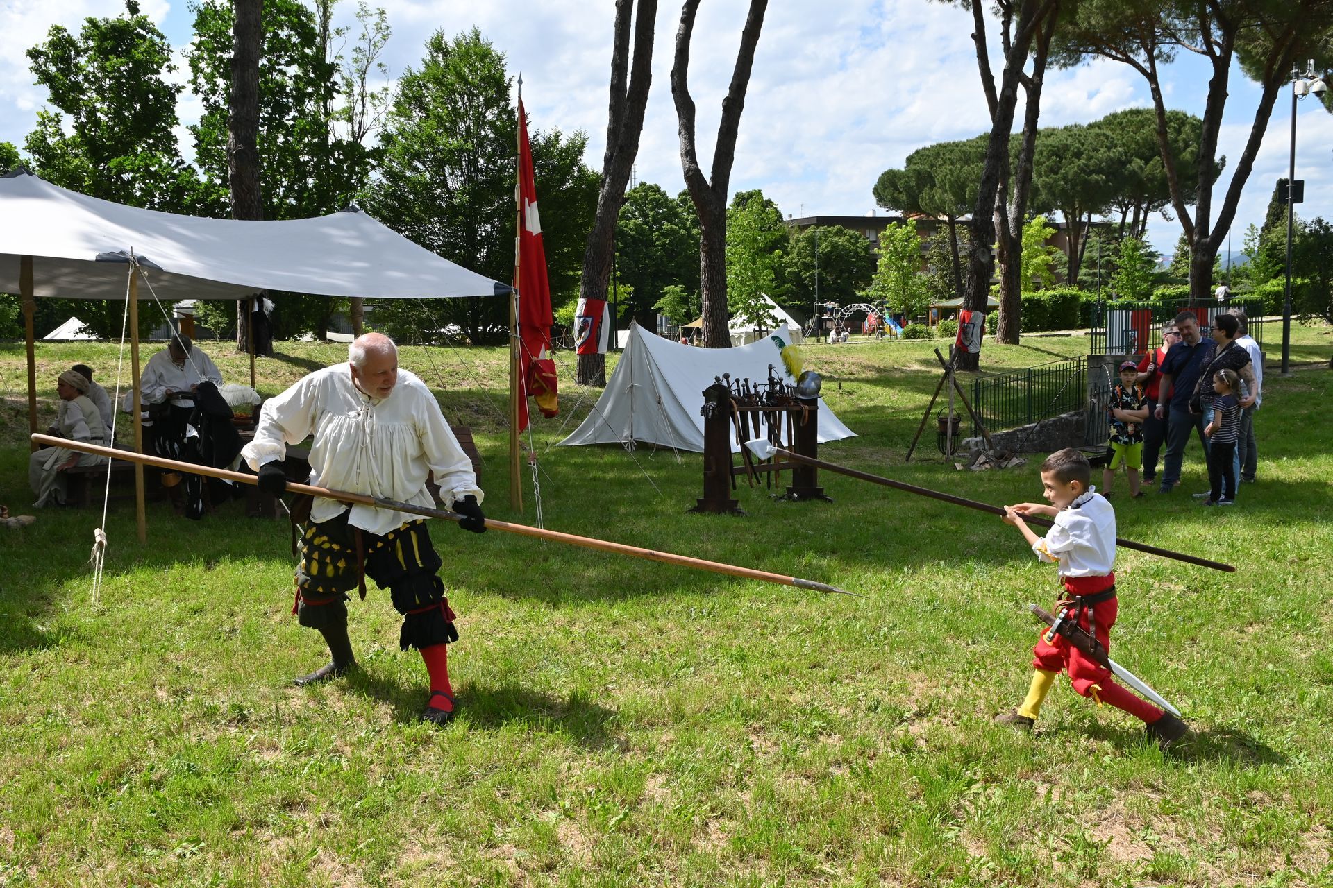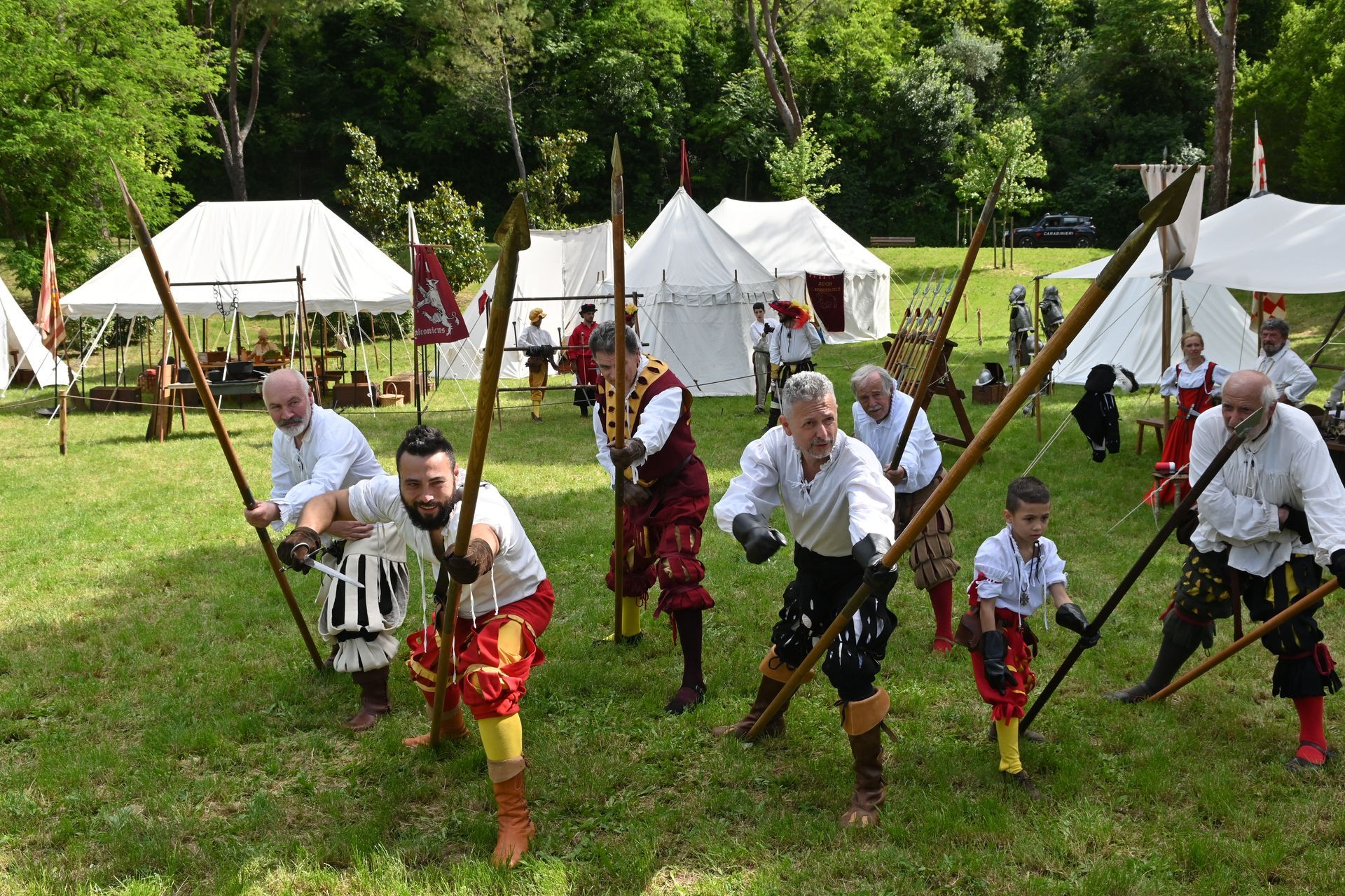I rievocatori hanno animato l'accampamento militare, rievocando delle vere e proprie battaglie, i gruppi Aper Labronicus, Scannagallo e Compagnia Giovanni dalle Bande Nere hanno messo in scena due bellissime dimostrazioni dei movimenti di picca e delle esercitazioni dei soldati cinquecenteschi; i rievocatori del gruppo di armati della Contrada