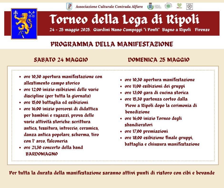 Ricorboli e San Salvi. La Comunità di Bagno a Ripoli formava anticamente una delle 76 Leghe in cui, fin dal 1250 fu ripartito l'ordine della milizia civica nel contado fiorentino; a ciascuna lega fu assegnata una bandiera o insegna, sotto la quale i giovani che andavano in battaglia dovevano stare; per rafforzare l'unità e il senso di appartenenza fu organizzata ogni anno il giorno di Pentecoste, una grande cerimonia, con cavalcata e sfilata, in cui si conferivano ai capitani della gioventù le insegne della Lega. Questa tradizione si è mantenuta nel tempo e ha fatto perdurare la consuetudine della festa di popolo proprio nel giorno di Pentecoste anche nei secoli successivi. Emanuele Repetti nel suo Dizionario geografico e storico della Toscana, ricorda come l'insegna della Lega di Ripoli si vedesse scolpita nell'architrave della porta del Podestà di Bagno a Ripoli, facevano parte della Lega oltre ai popoli della zona ripolese, anche quelli di Rovezzano, Settignano, Varlungo e Rosano, 25 popoli, così li definisce il geografo, tutti alla sinistra dell'Arno. Una radicata origine storica fa da fondamento dunque a questa bella manifestazione, che si propone come rievocazione storica della vera essenza delle tradizioni del territorio ripolese.